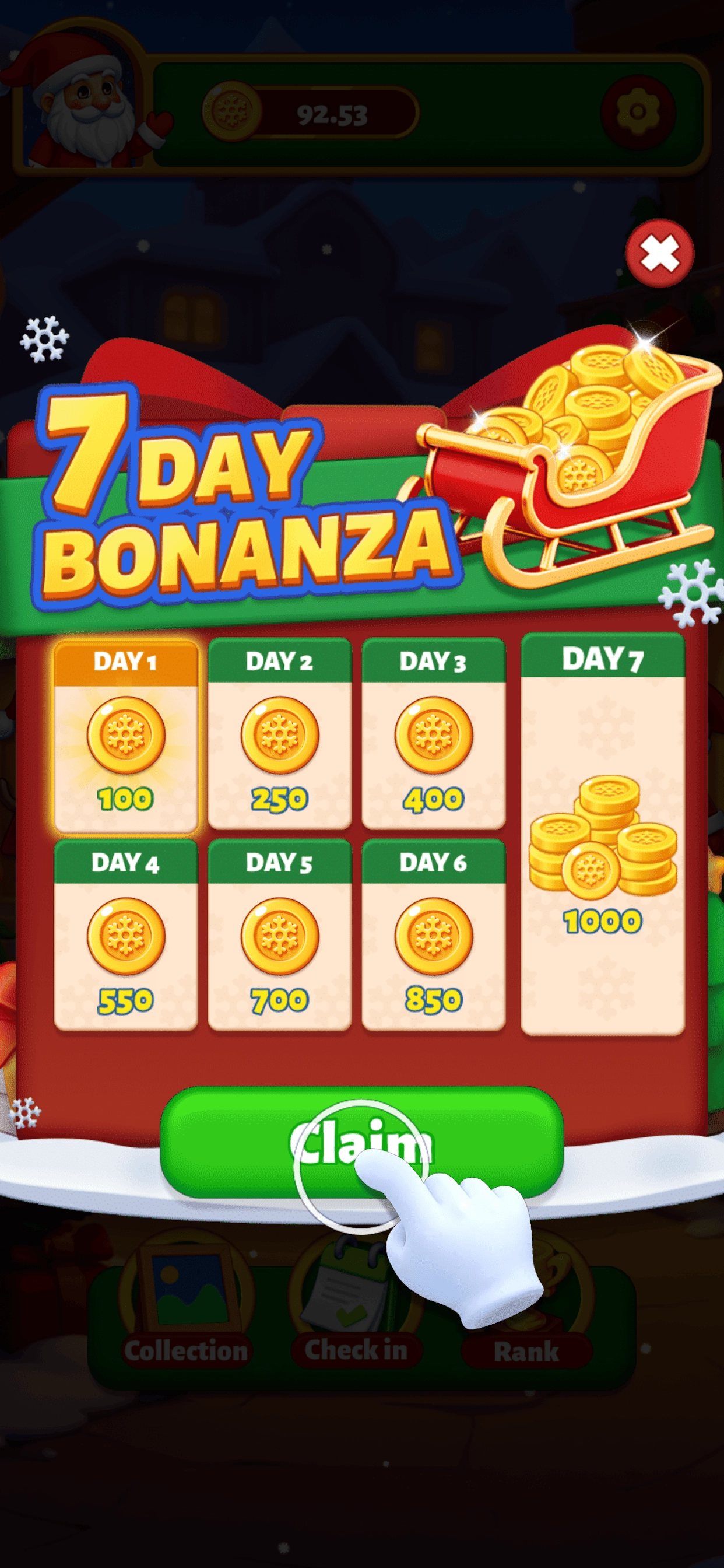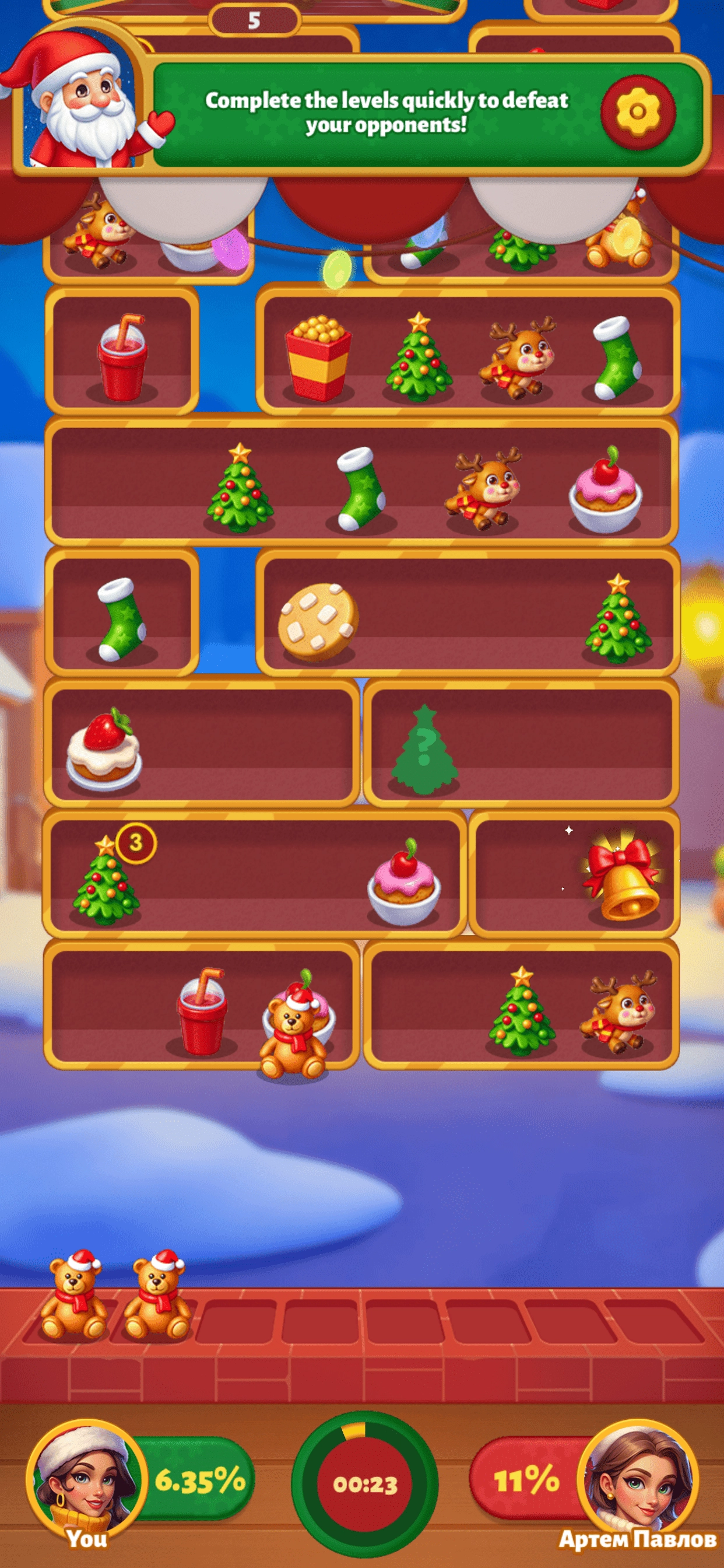 In the snow-covered Arctic, Santa's reindeer team is ready to set off—but the gifts are piled up in a jumble! Use your wit and ingenuity to help Santa organize them! The game features thousands of levels, each hiding Christmas-themed easter eggs: exquisitely wrapped toys, sweet candies, warm scarves and gloves, twinkling Christmas decorations, and even Santa's exclusive red stockings!